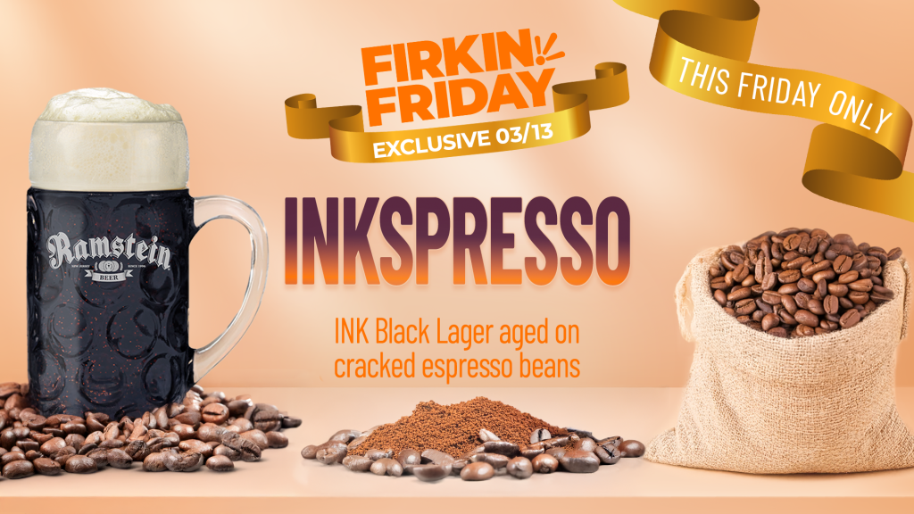 This Friday only, try our Inkspresso! This is our classic INK Black Lager aged on cracked espresso beans. Only available March 13.